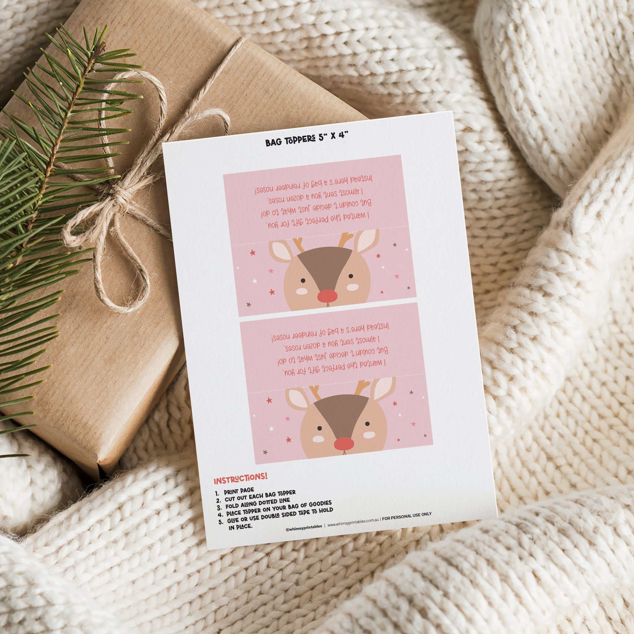 Add a fun and festive touch to your Christmas gifts with this adorable Reindeer Noses Treat Bag Topper!